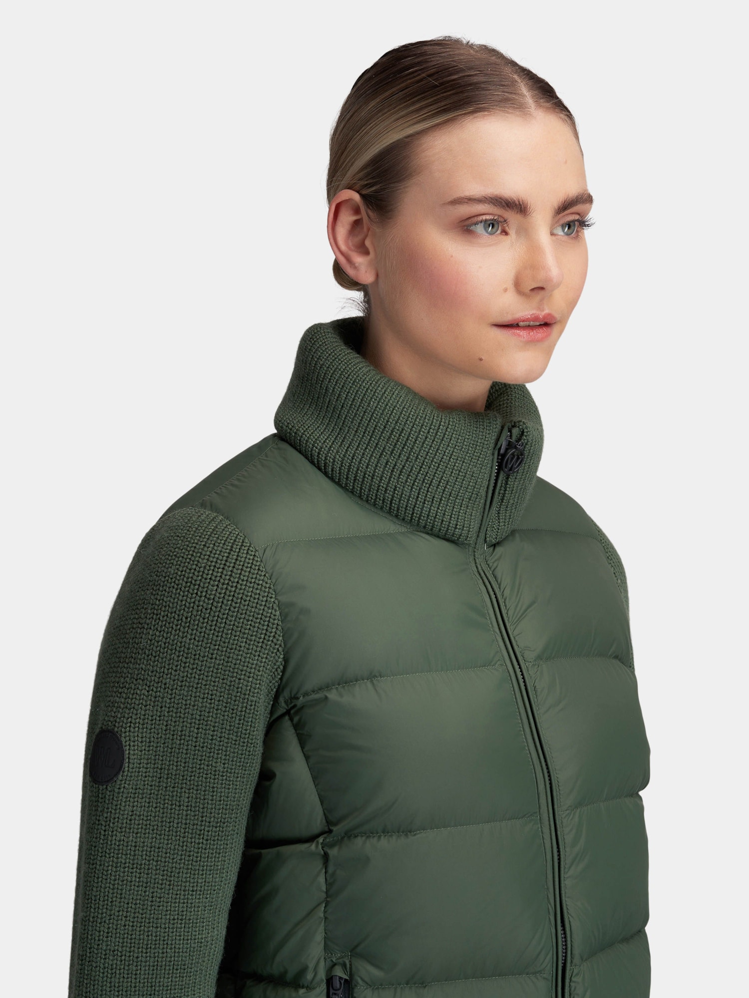 • This down jacket features knitted sleeves in a soft and stretchy wool blend, making it very comfortable to wear. The jacket has a high collar with ribbed knit in the same wool quality as the sleeves. It provides excellent warmth and is the perfect transitional jacket between seasons. The quality of the outer fabric has been treated with Bionic Finish® Eco, which is a water-repellent treatment that allows the jacket to withstand light rain for an extended period. Normal fit.