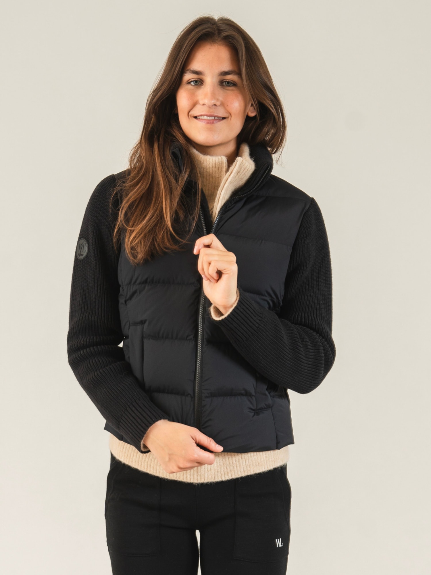 • This down jacket features knitted sleeves in a soft and stretchy wool blend, making it very comfortable to wear. The jacket has a high collar with ribbed knit in the same wool quality as the sleeves. It provides excellent warmth and is the perfect transitional jacket between seasons. The quality of the outer fabric has been treated with Bionic Finish® Eco, which is a water-repellent treatment that allows the jacket to withstand light rain for an extended period. Normal fit.